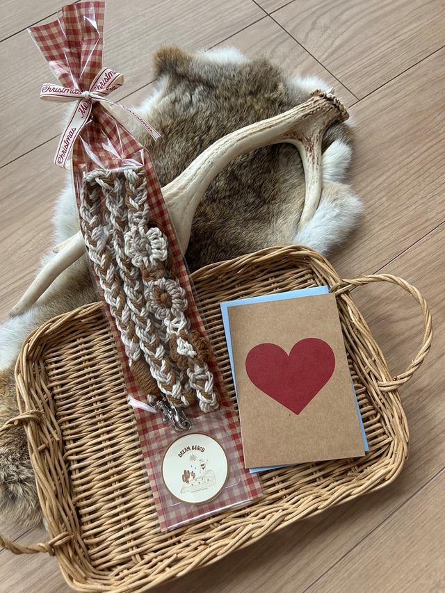 ノベルティー付き!(フラワーキーホルダー) Christmas Collection♡販売スタート!! カラーをよくご確認の上、ご購入ください。 ショルダーストラップのニューカラー♡ クリスマスラッピング+メッセージカード付きでお届け♪ 自分へのプレゼントや家族やお友達にも このままプレゼントでお渡しでします。 配送上、ラッピングに変更もありますが ご了承下さい。 花が胸あたりにくるように1つ1つハンドメイドで編んだ便利なショルダーストラップ!! 付属のシリコンパーツをスマホとケースの間に 挟むだけで簡単にショルダーに変身。 長さ:約115〜120センチ(多少の伸縮性あり) 金具:シルバー カラー:ホワイト×グレージュ×ブラウン 付属品:シリコンシート、メッセージカード、ノベルティーのフラワーキーホルダー(お色味はお選びいただけません) 発送方法:レターパックライト 肌にも環境にも優しいオーガニックコットン使用。 肩など肌にあたる部分もありますが安心してご利用いただけます。 スマホの他にも ショルダーバッグやカメラのストラップとしても活躍できます。 さまざまなスタイルに合わせてお使いいただけます。 汚れた場合は洗濯も可能なので 長くご利用いただけます♪ (つけ置き洗いをオススメしています) お気に入りの色を見つけてみてください♡ 丈夫で耐久性があり、長くお使いいただけます。 素敵なマクラメフラワーショルダーストラップを持って、お出かけをもっと楽しんでみませんか♪ キャンプやイベント、旅行にもとっても便利なアイテムです♡ ※商品画像と実際の色が異なる場合がございますので、ご了承ください。